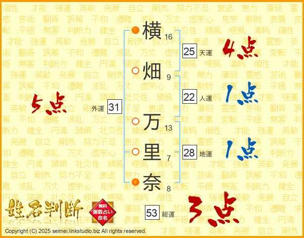 横畑万里奈さんの外運は31画の5点!
