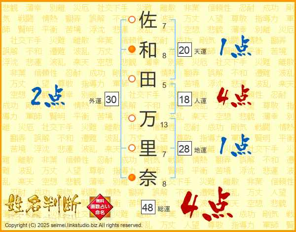 佐和田万里奈さんの総運は48画の4点!