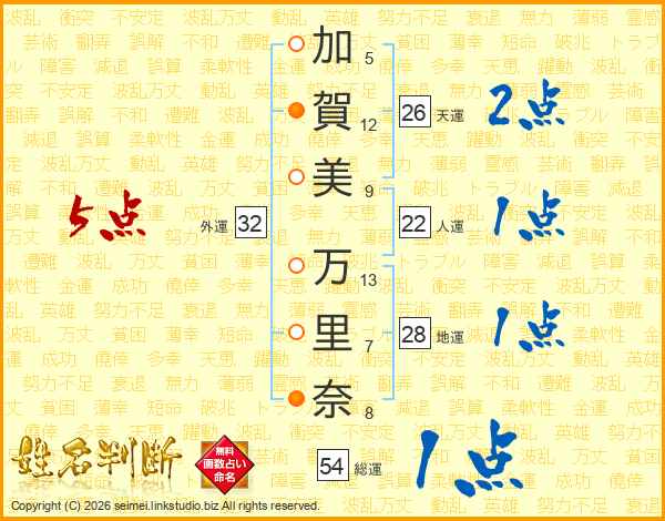 加賀美万里奈さんの外運は32画の5点!
