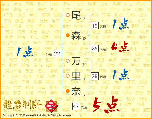 尾森万里奈さんの総運は47画の5点!