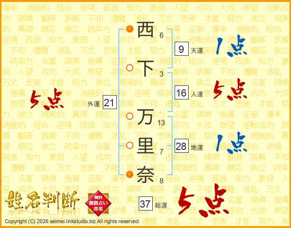 西下万里奈さんの外運は21画の5点!