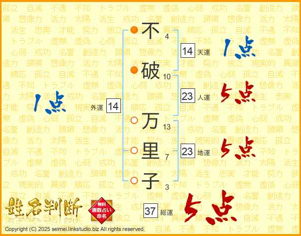 不(4画)破(10画) 万(13画)里(7画)子(3画)