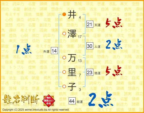 井(4画)澤(17画) 万(13画)里(7画)子(3画)