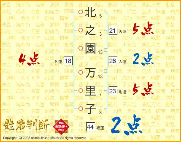 北之園万里子さんの総運は44画の2点!