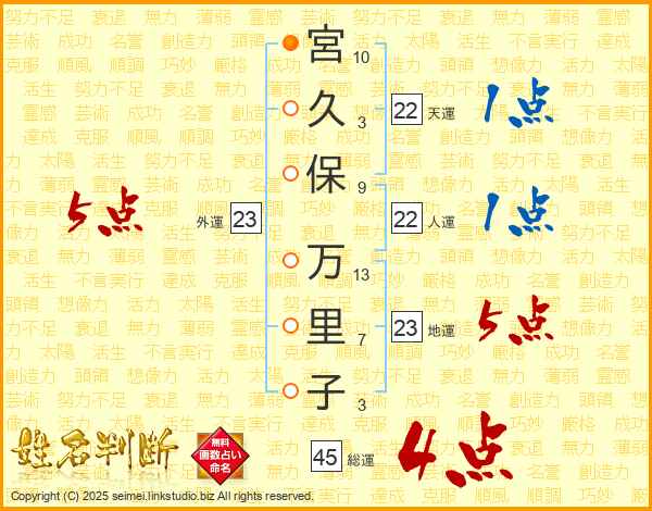 宮久保万里子さんの総運は45画の4点!