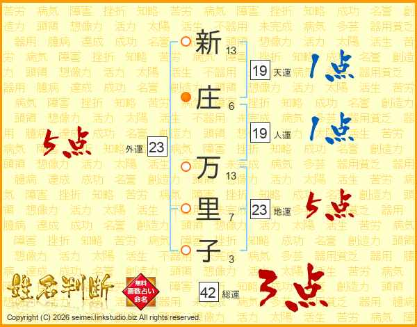 新庄万里子さんの地運は23画の5点!