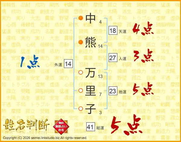 中熊万里子さんの外運は14画の1点!