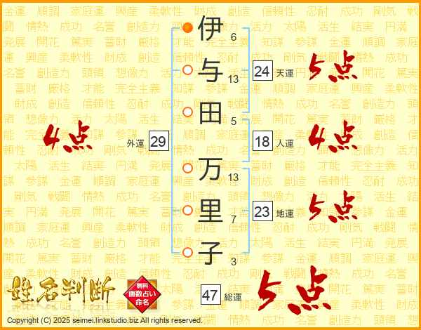 伊与田万里子さんの総運は47画の5点!