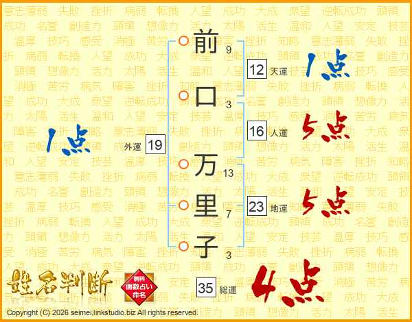 前口万里子さんの外運は19画の1点!