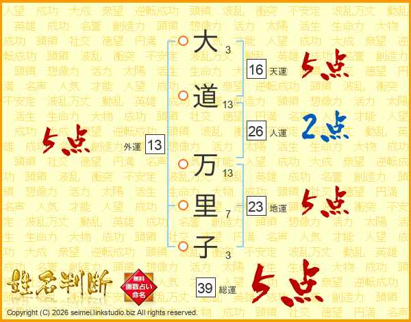 大(3画)道(13画) 万(13画)里(7画)子(3画)