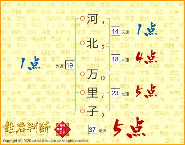 河北万里子さんの総運は37画の5点!