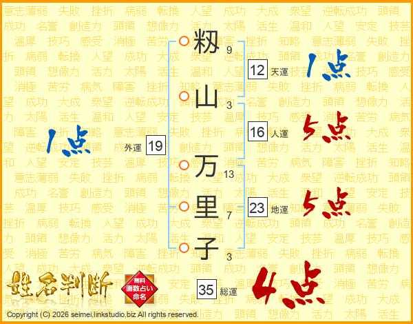 籾山万里子さんの総運は35画の4点!