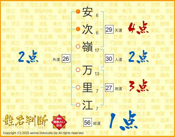 安次嶺万里江さんの総運は56画の1点!