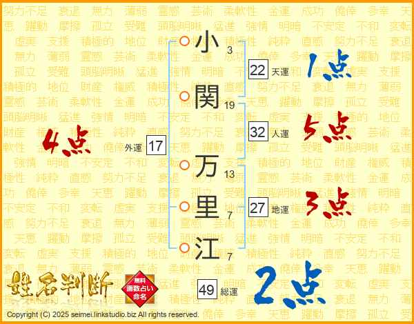 小関万里江さんの総運は49画の2点!