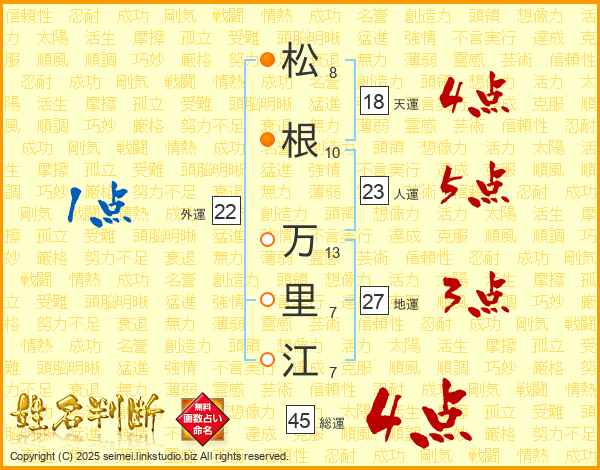 松根万里江さんの人運は23画の5点!