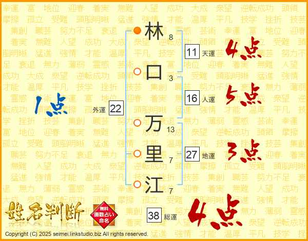林(8画)口(3画) 万(13画)里(7画)江(7画)