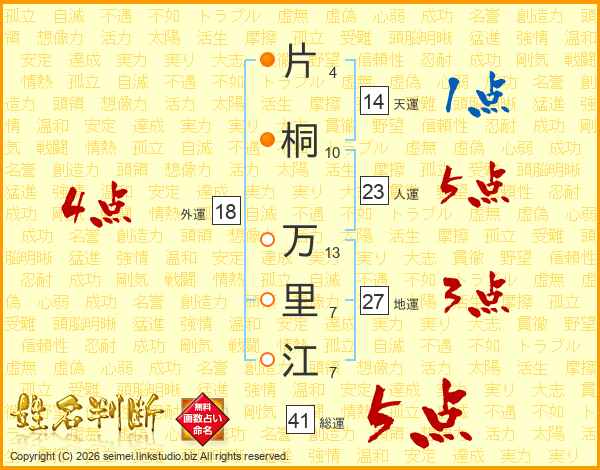 片(4画)桐(10画) 万(13画)里(7画)江(7画)