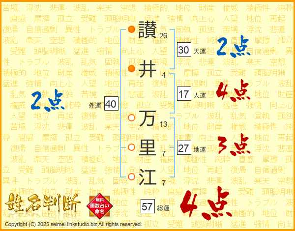讃(26画)井(4画) 万(13画)里(7画)江(7画)