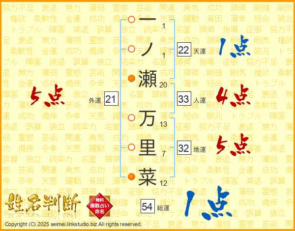 一ノ瀬万里菜さんの外運は21画の5点!