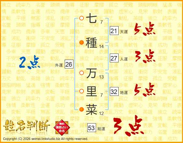 七(7画)種(14画) 万(13画)里(7画)菜(12画)