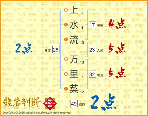 上水流万里菜さんの総運は49画の2点!