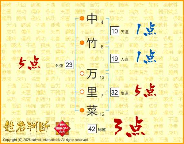 中竹万里菜さんの総運は42画の3点!