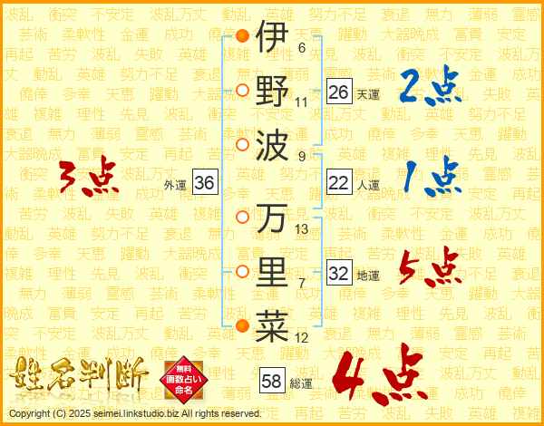 伊野波万里菜さんの総運は58画の4点!
