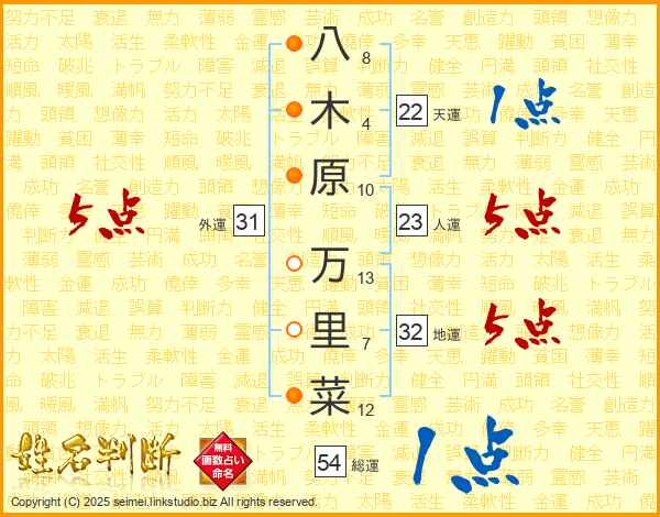 八木原万里菜さんの外運は31画の5点!