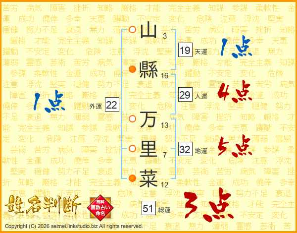 山縣万里菜さんの地運は32画の5点!