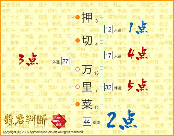 押切万里菜さんの総運は44画の2点!