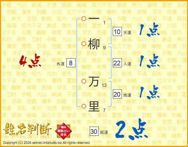 一柳万里さんの人運は22画の1点!