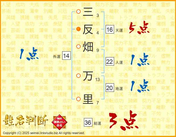 三反畑万里さんの人運は22画の1点!