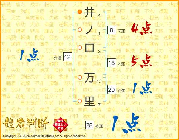 井ノ口万里さんの総運は28画の1点!