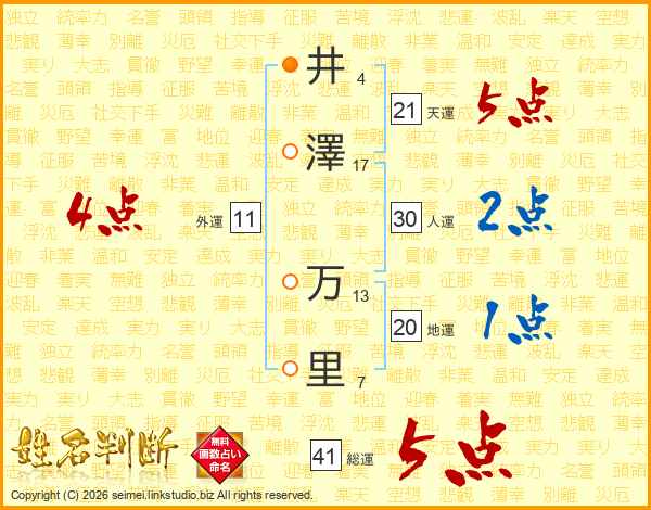 井(4画)澤(17画) 万(13画)里(7画)