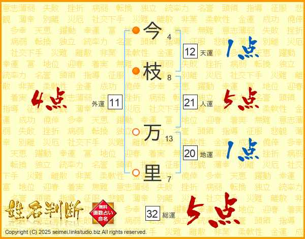 今枝万里さんの総運は32画の5点!