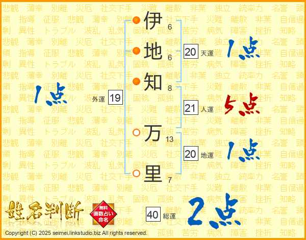 伊地知万里さんの総運は40画の2点!