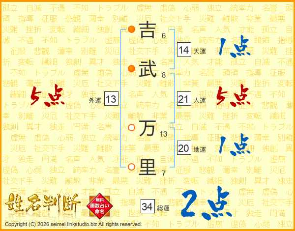 吉武万里さんの総運は34画の2点!