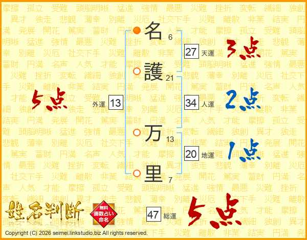 名護万里さんの総運は47画の5点!