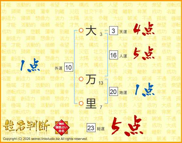 大万里さんの総運は23画の5点!