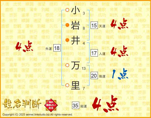 小(3画)岩(8画)井(4画) 万(13画)里(7画)