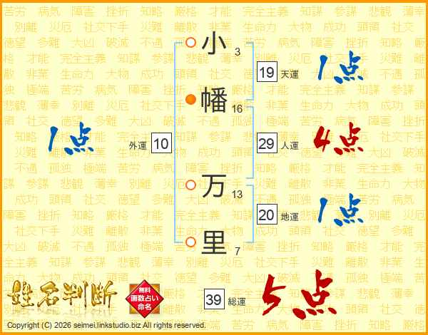 小幡万里さんの総運は39画の5点!