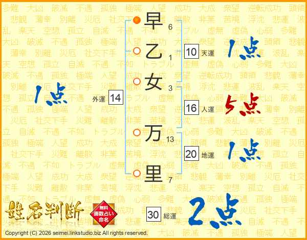 早乙女万里さんの外運は14画の1点!