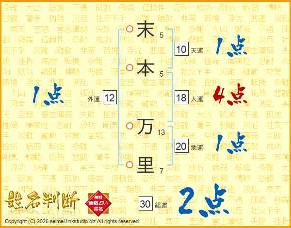 末本万里さんの人運は18画の4点!