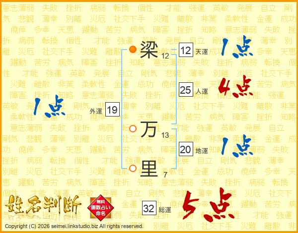 梁万里さんの総運は32画の5点!