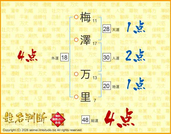 梅澤万里さんの総運は48画の4点!
