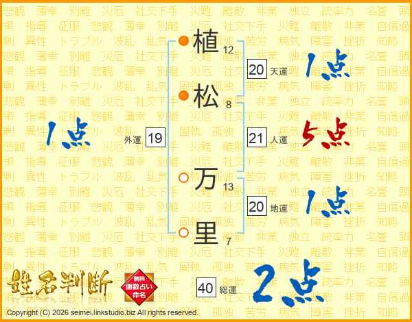 植松万里さんの人運は21画の5点!