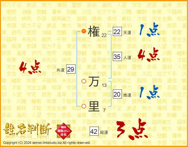 権(22画) 万(13画)里(7画)