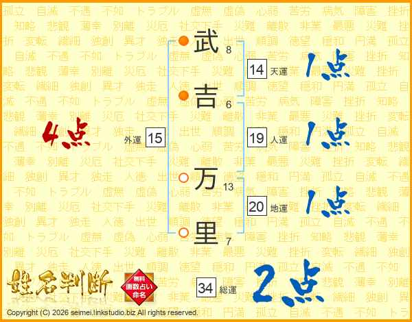 武吉万里さんの総運は34画の2点!