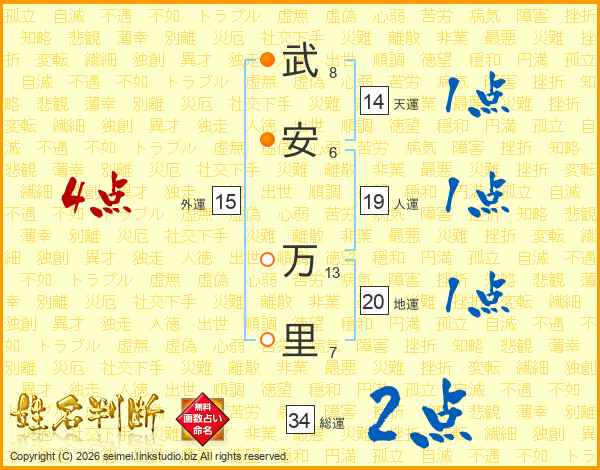 武安万里さんの総運は34画の2点!