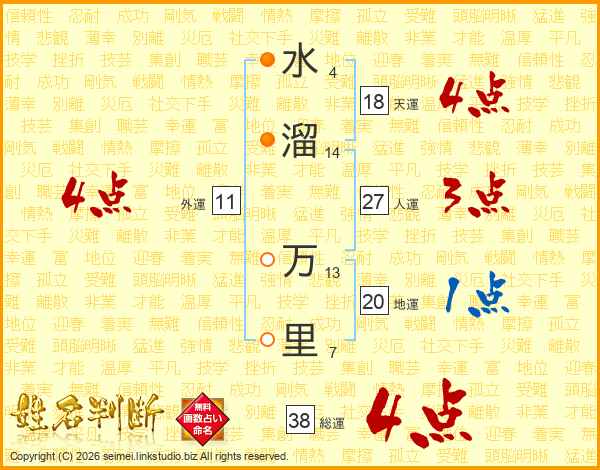 水溜万里さんの総運は38画の4点!